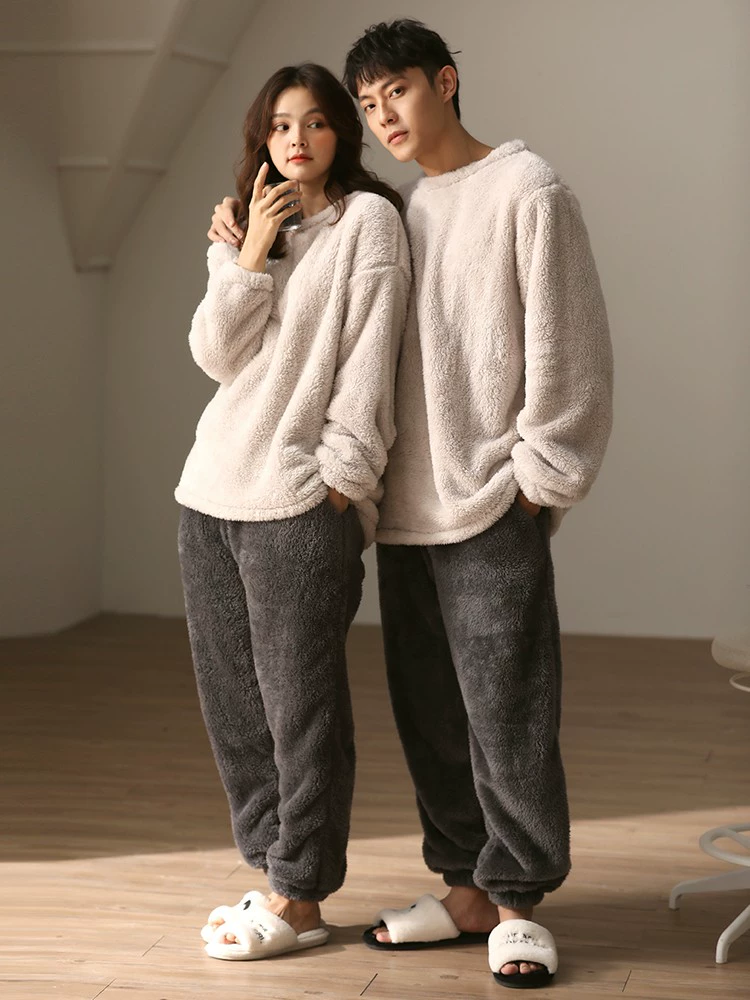 [سميكة ومخملية] زوجين منامة الخريف والشتاء المرجان المخملية الدافئة الرجال والنساء الدعاوى الفانيلا البلوز ملابس المنزل