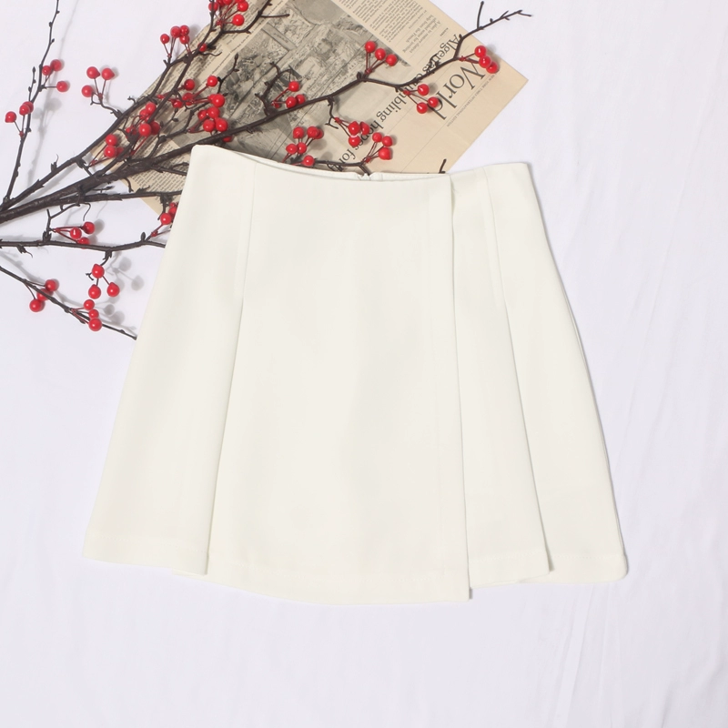 تنورة شيفون غير متماثلة ذات ثنيات على الطراز الكوري ومضادة للتعرض