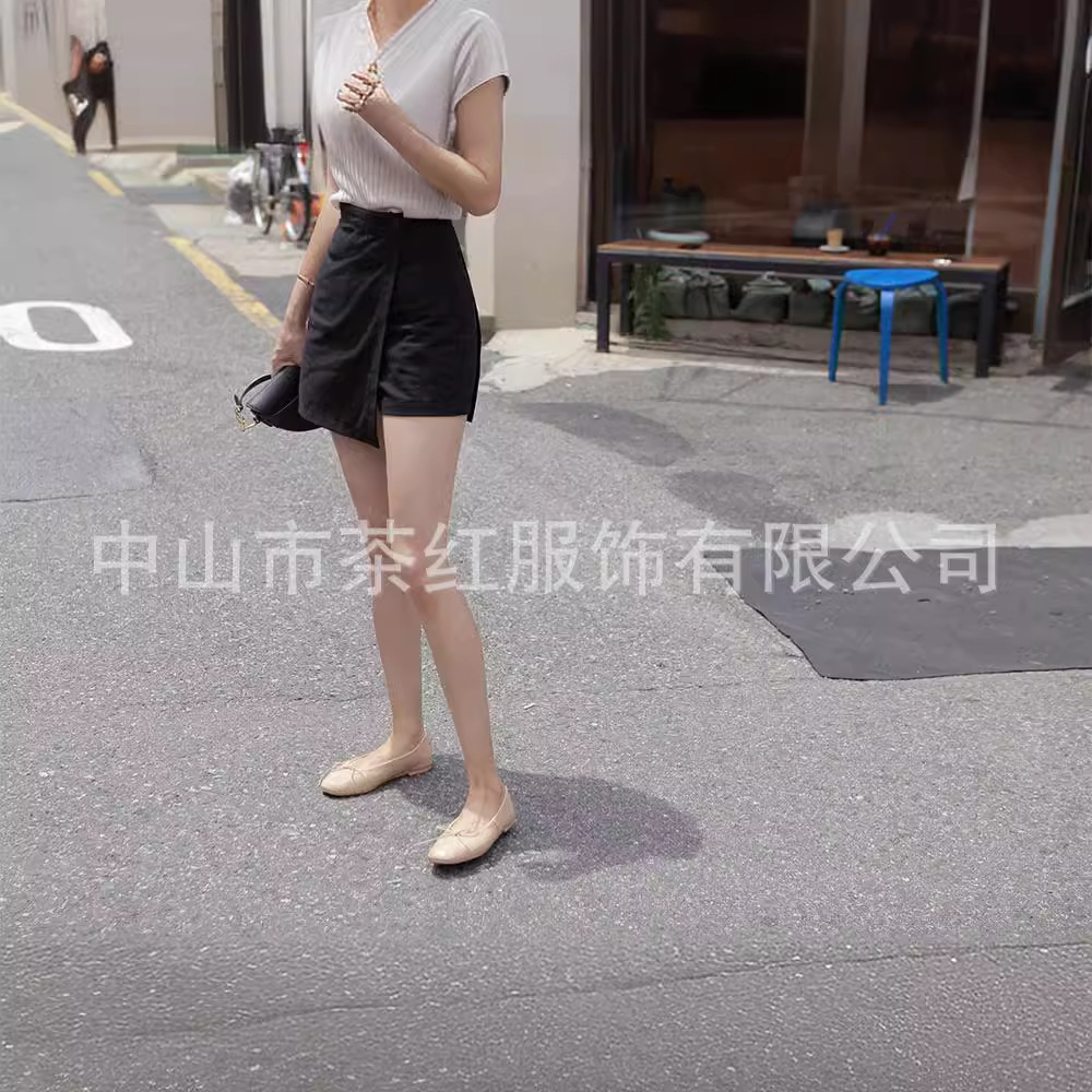 تنورة قصيرة صيفية للسيدات عبر الحدود على شكل حرف A، مكونة من قطعتين بلون سادة من القطن عالي الخصر غير رسمي