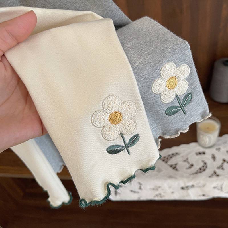 2024 جديد طفلة مرنة كل مباراة طماق الخريف ملابس خارجية الفتيات المطرزة زهرة صغيرة المكرر القطن بنطال ملاصق للجسم