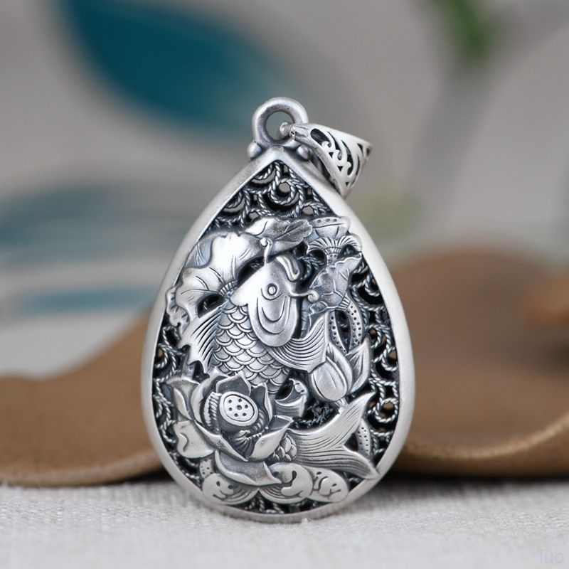 خمر S999 سترة الفضة النقية سلسلة طويلة المرأة الفضة الاسترليني قلادة كبيرة قلادة مصنوعة يدويا قلادة نمط العرقية