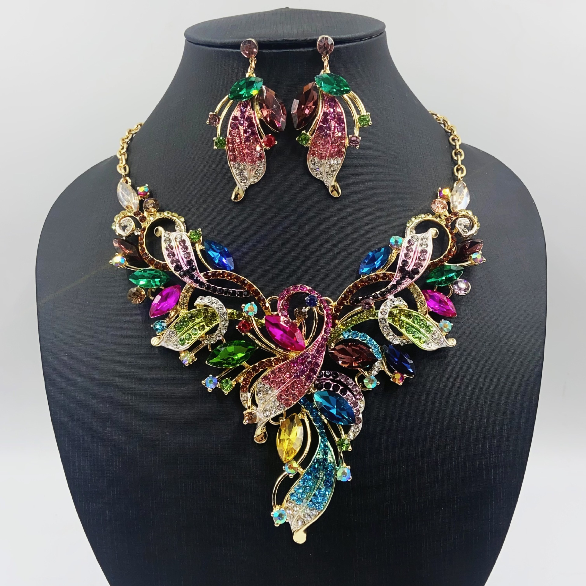انفجارات التجارة الخارجية الأوروبية والأمريكية مبالغ فيها اللوحة النفط كريستال الماس قلادة أقراط بدلة فستان الزفاف مأدبة المرأة طقم مجوهرات