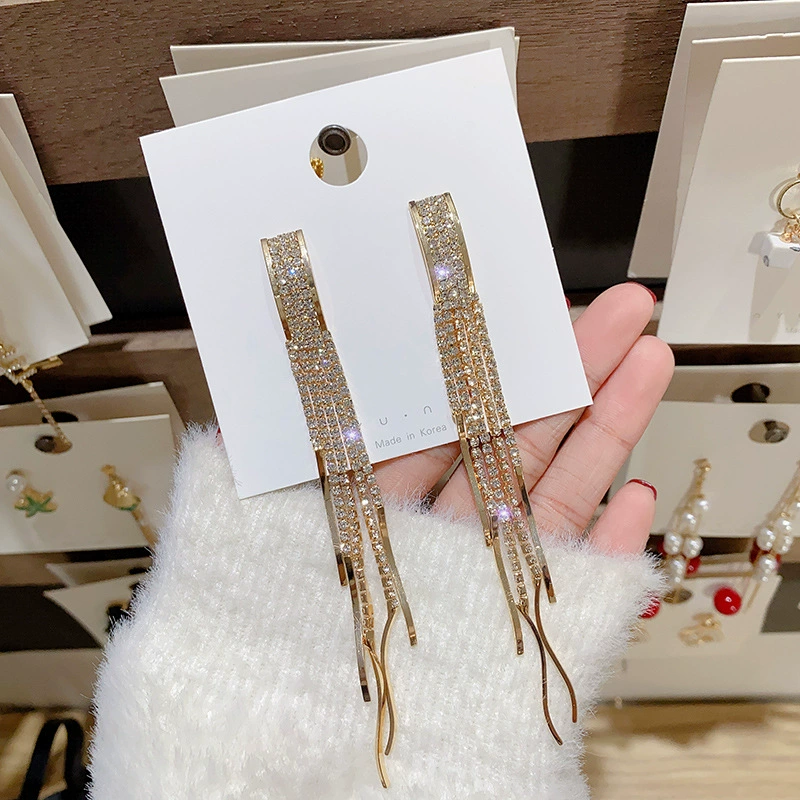 أقراط الشرابة الأوروبية والأمريكية للنساء اللواتي يعانين من الإبرة الفضية الطويلة التي تشكلها الماس