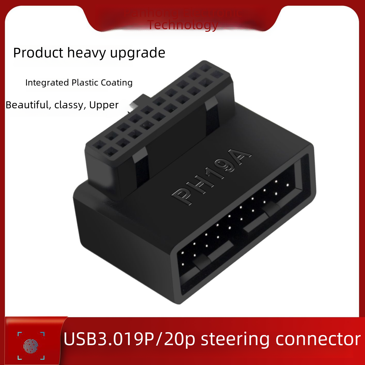 لوحة أم للكمبيوتر المكتبي USB3.019/20p مقبس 90 درجة رأس التوجيه توجيه قطعة أثرية تركيب الملحقات مع قذيفة