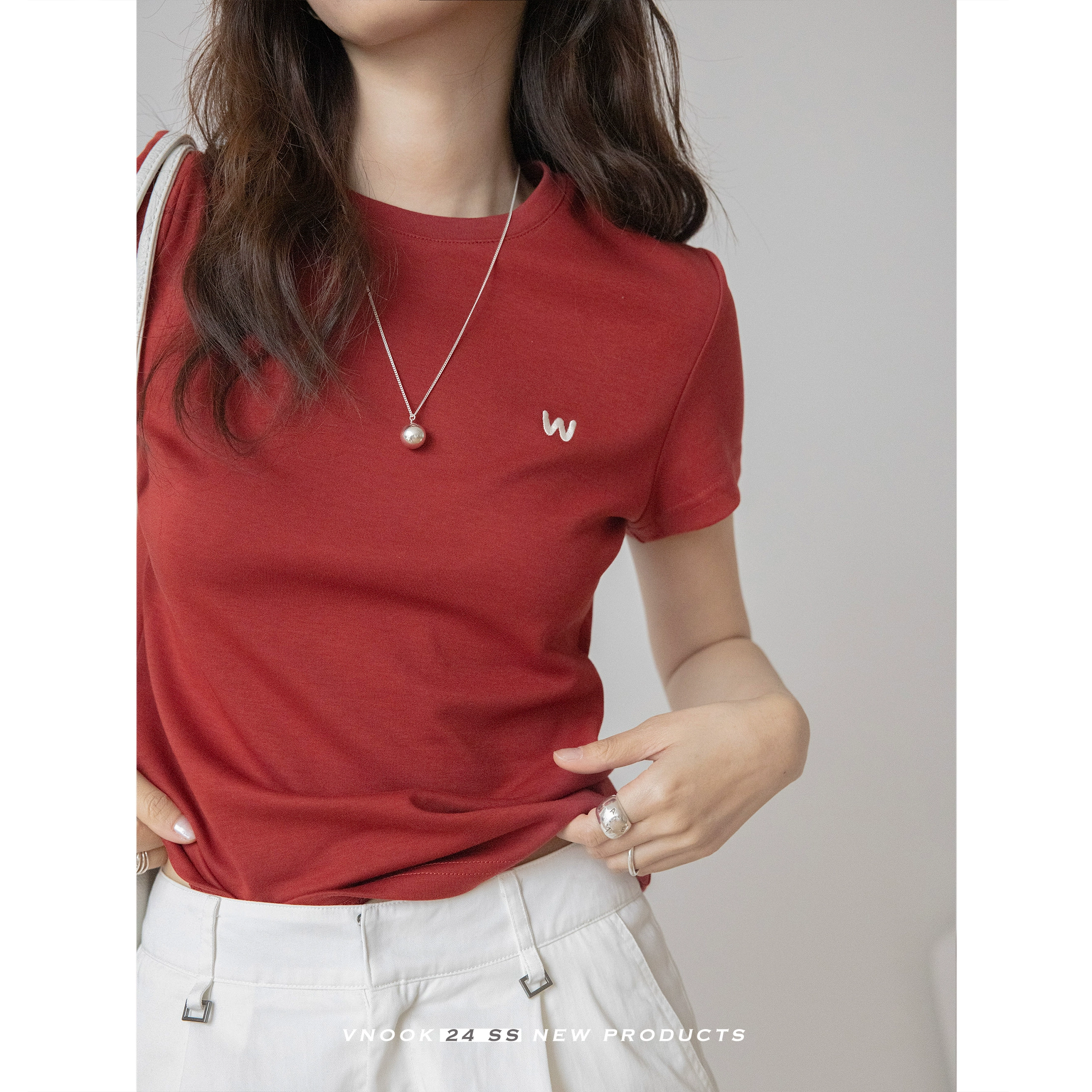 تي شيرت VNOOK بأكمام قصيرة وكتف يمين بلون سادة كاجوال مطرز
