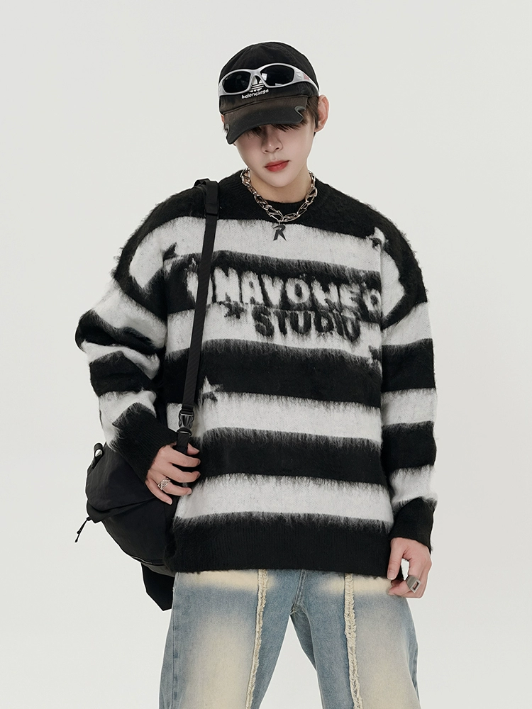 سترة محبوكة للزوجين مخططة كسول عتيقة