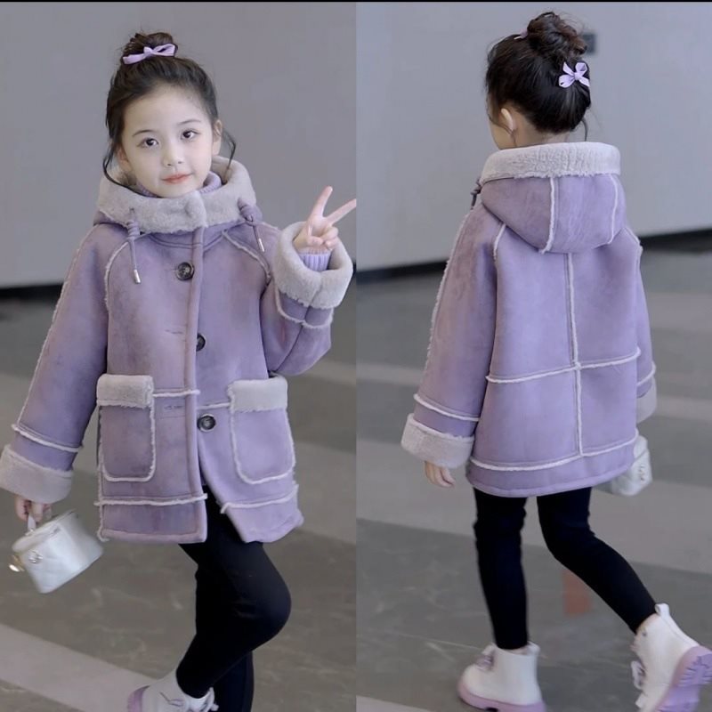 الفتيات الفراء واحد زائد المخملية سترة 2023 الفتاة الجديدة الخريف والشتاء سميكة أعلى كبير للأطفال النمط الغربي ملابس الشتاء