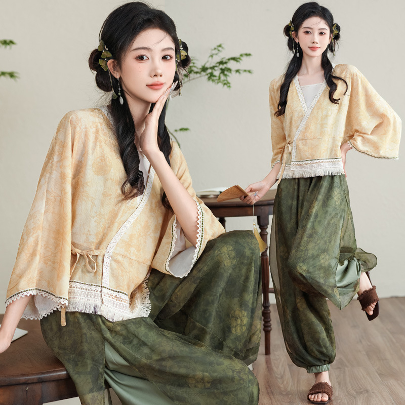 سترة صوفية كلاسيكية جديدة على الطراز الصيني لعام 2024 برقبة على شكل حرف v وأربطة علوية بدلة بلومرز كلاسيكية معدلة قديمة