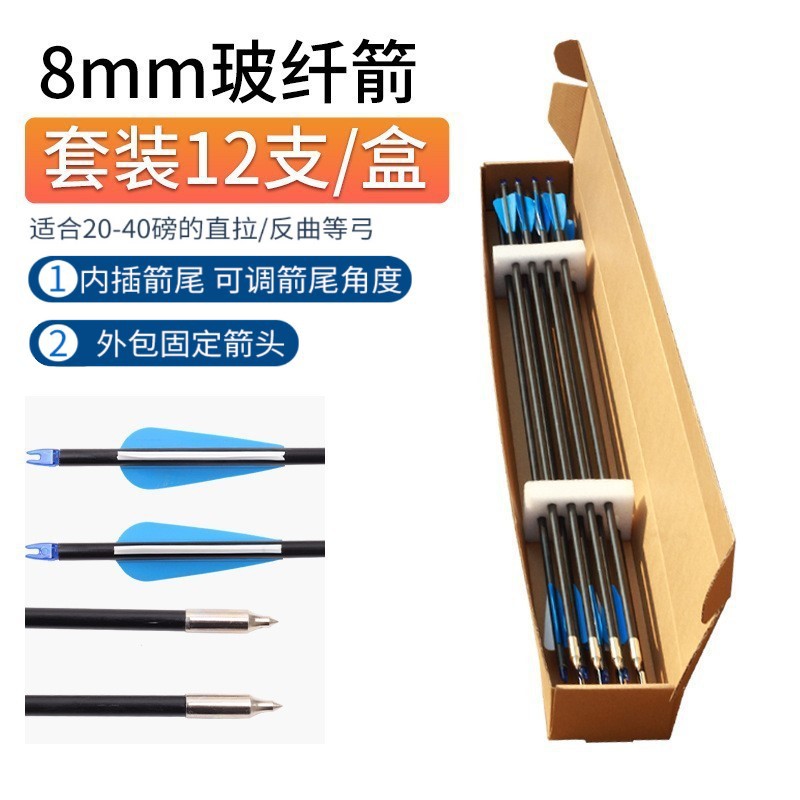 المصنع مباشرة 8 مللي متر الألياف الزجاجية السهم دعوى الجمال التقليدي قوس الصيد الرياضة في الهواء الطلق دخول الممارسة السهم 12 قطعة/صندوق