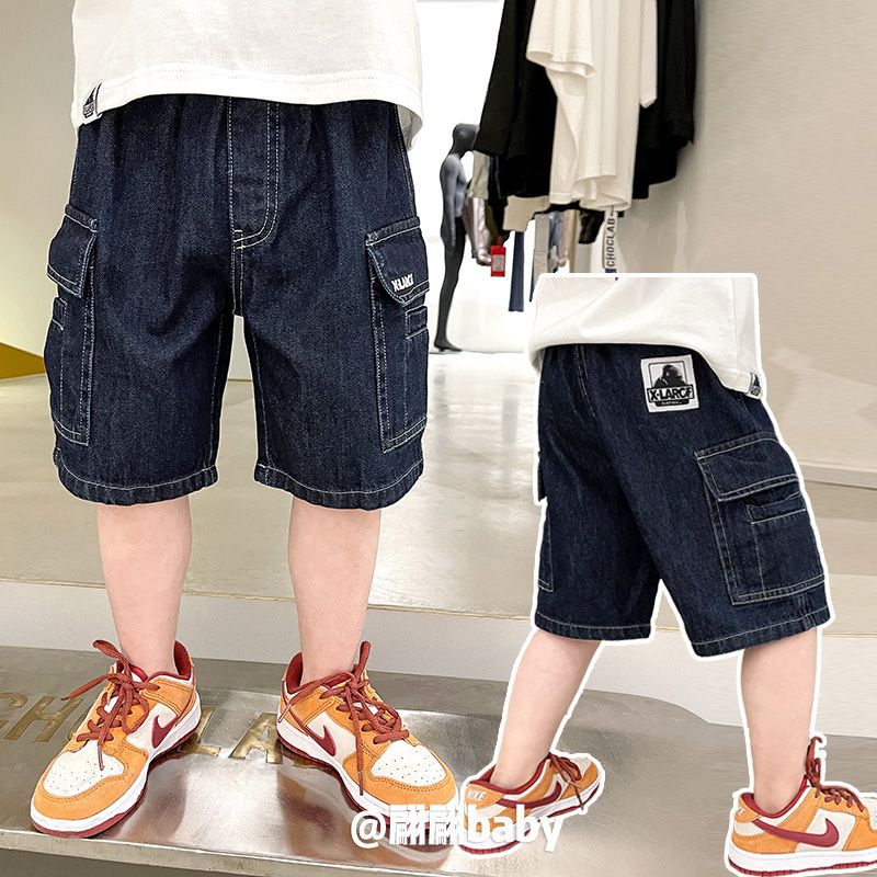 سراويل الأولاد 2024 صيفية جديدة للأطفال يابانية عصرية غير رسمية بجيوب كبيرة ملابس العمل خط علوي من الدنيم نصف السراويل
