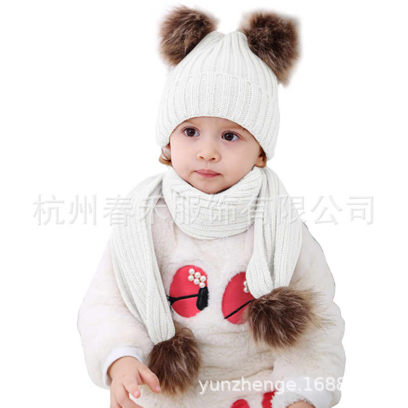 قبعة شتوية مكونة من قطعتين، وشاح من ثلاث قطع، قبعة كروية، طقم قبعة صوف أكريليك لطيف للفتيات