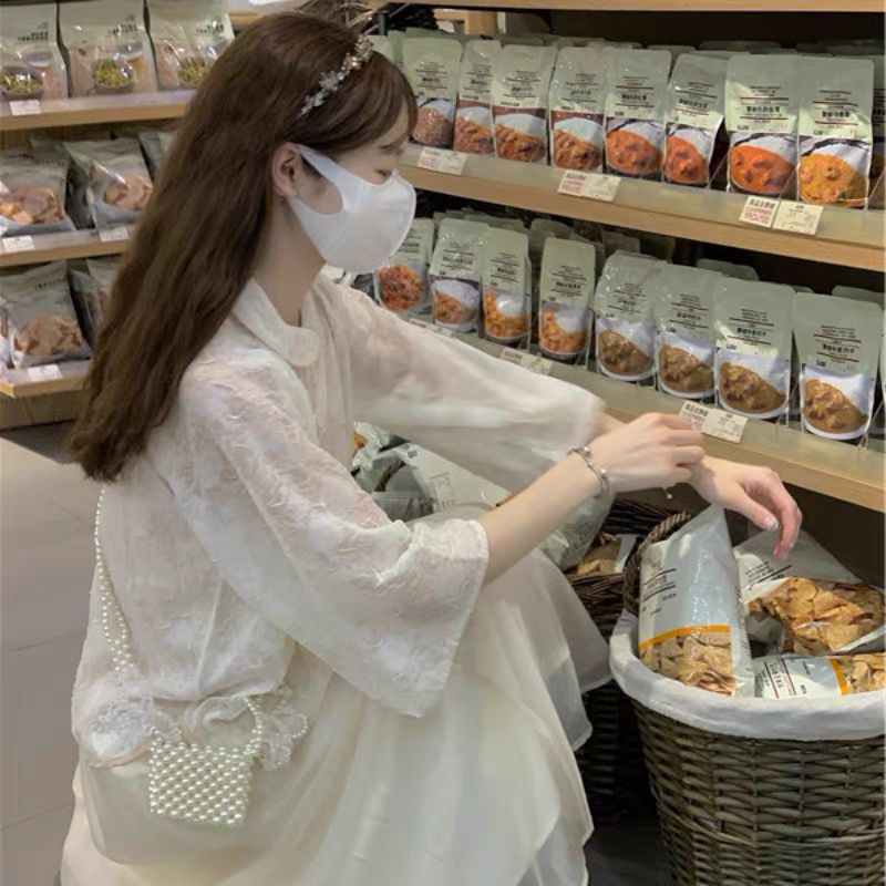 الحليب الحلو ولطيف نمط جديد النمط الصيني تحسين شيونغسام فستان الصيف الرجعية النمط الوطني مشبك بلوزة بدلة الموضة
