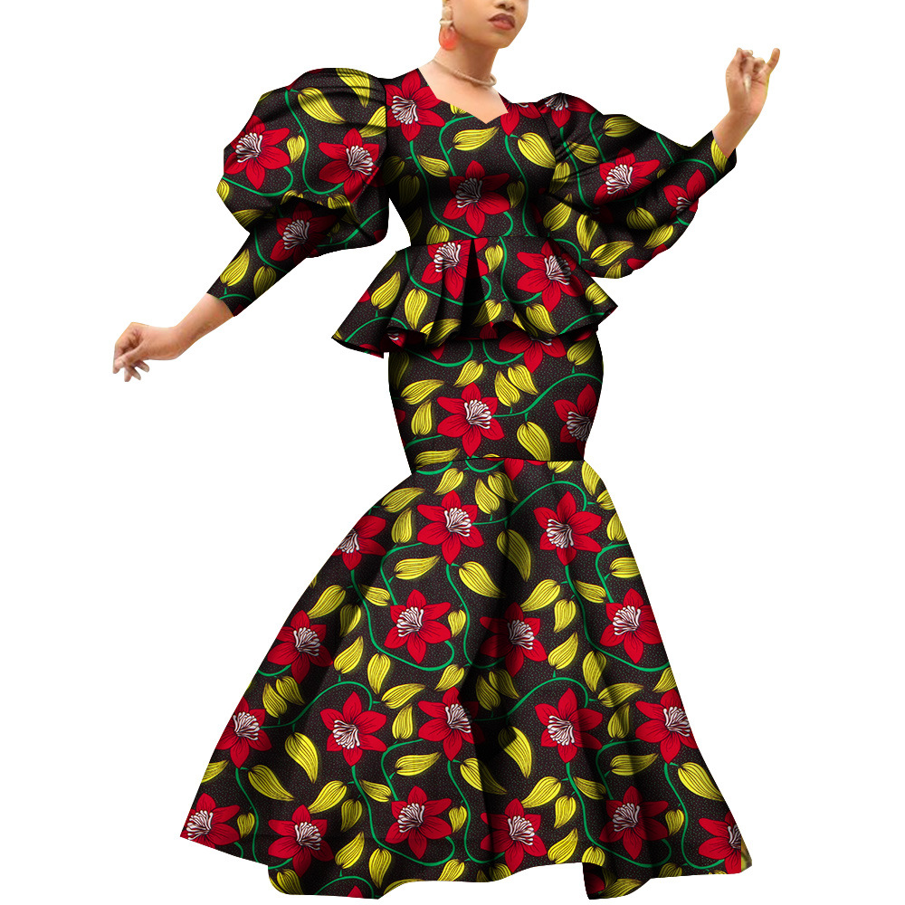 توريد عبر الحدود بدلة نسائية أفريقية مطبوعة وتنورة من قطعتين ملابس حفلات الزفاف