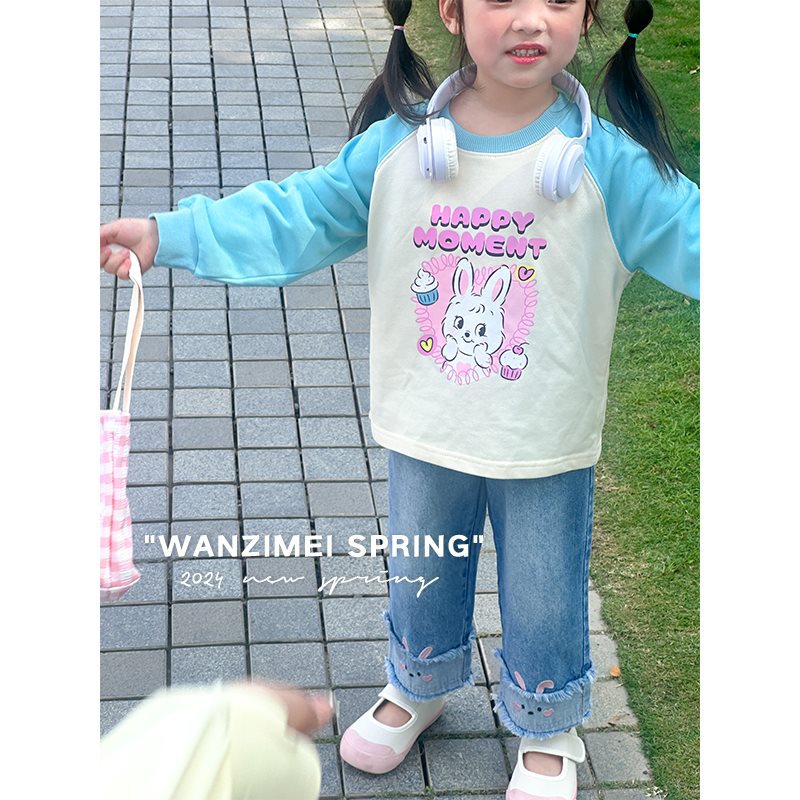 سراويل جينز Marubeni Girl من SASA’s ربيع جديد للأطفال مطرزة على شكل أرنب وأرجل مستقيمة فضفاضة
