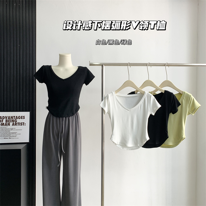 المرأة قصيرة الأكمام الأعلى جديد أنيق الربيع والصيف سليم صالح الخامس الرقبة قاعدة قميص المرأة سليم نظرة المألوف كل مباراة سترة