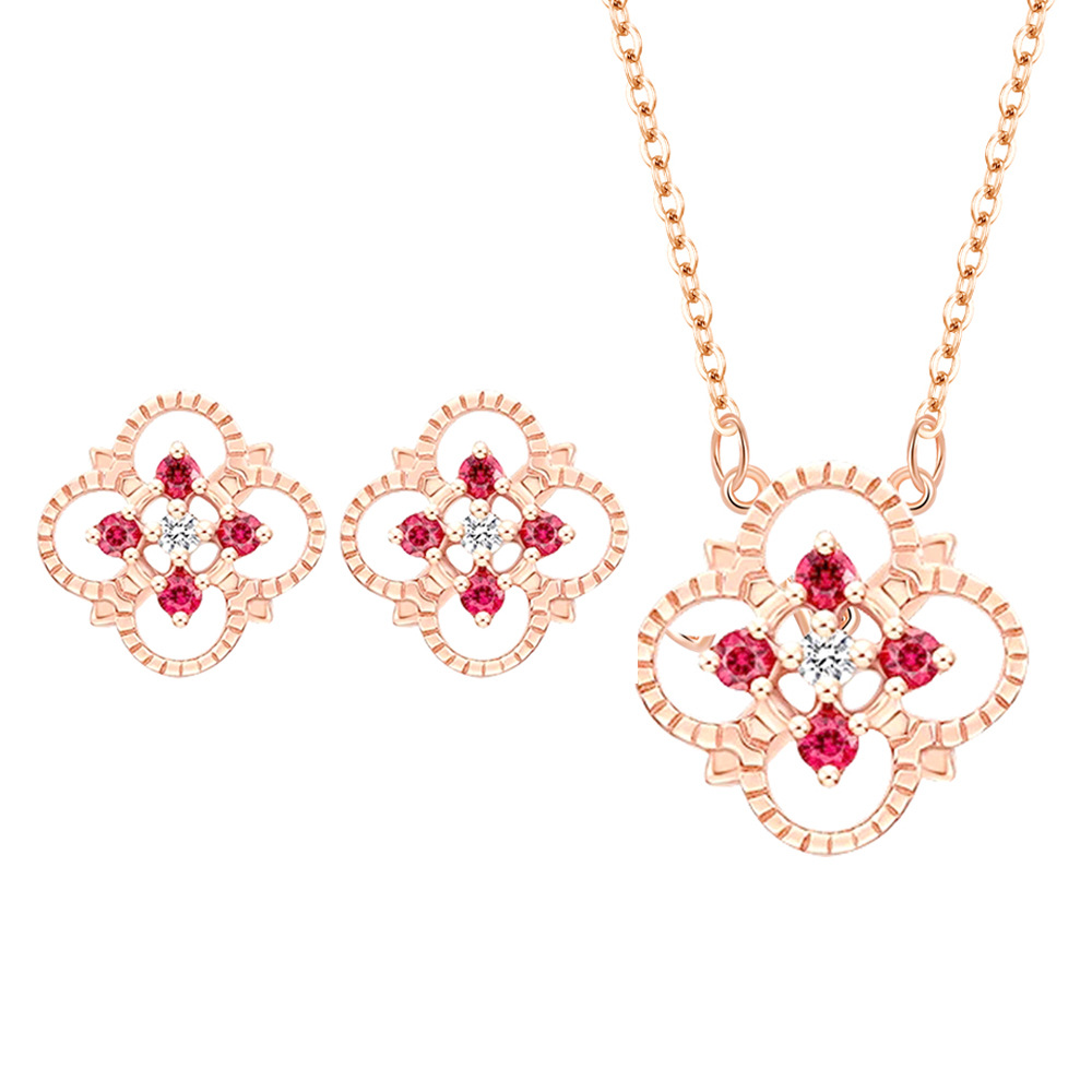Tiktok رائجة البيع جديد مايكرو مطعمة الوردي الأحمر البرسيم قلادة أقراط دعوى ins الإنترنت المشاهير سلسلة الترقوة الملحقات