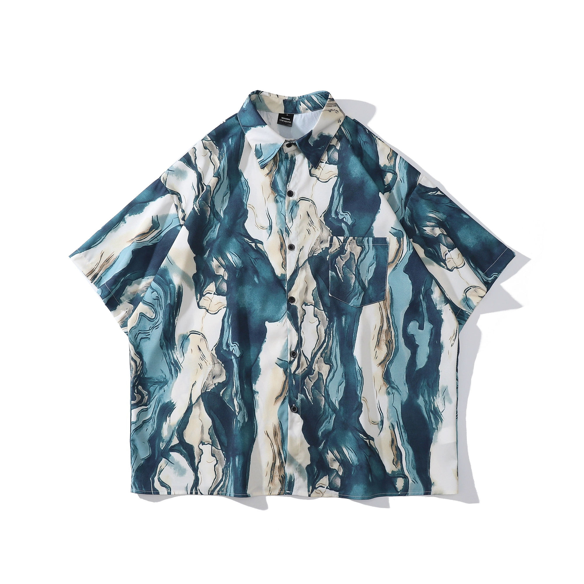 BF الرجعية زيت الطلاء الكامل -طباعة شاطئ الشاطئ القصير -القميص القصيرة