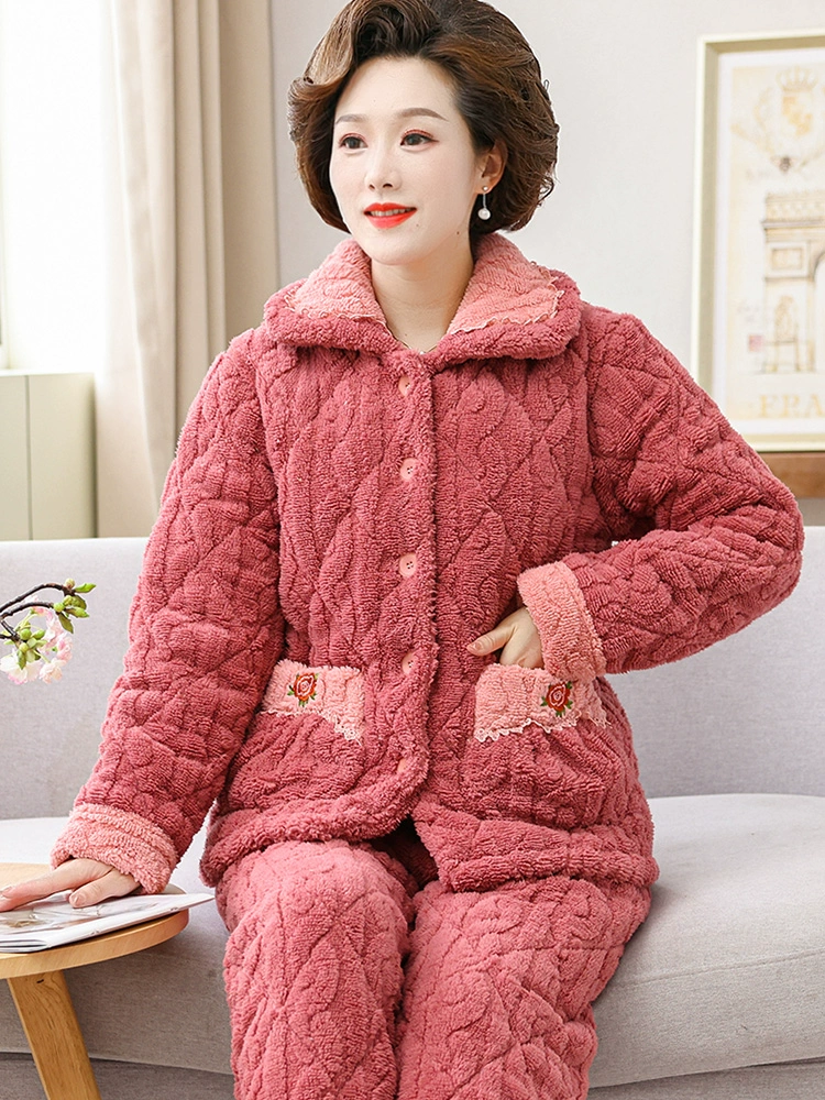 بيجامات الأم في منتصف العمر وكبار السن من ثلاث طبقات من ثلاث طبقات سميكة بالإضافة إلى مخملية مخملية مخملية في المخملية الشتوية المبطنة.