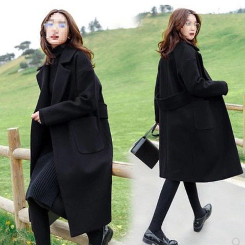 سوبر الساخنة Ins معطف الصوف المرأة العصرية الخريف والشتاء جديد طويل الكورية نمط فضفاض التخسيس معطف الصوف الأسود للأم