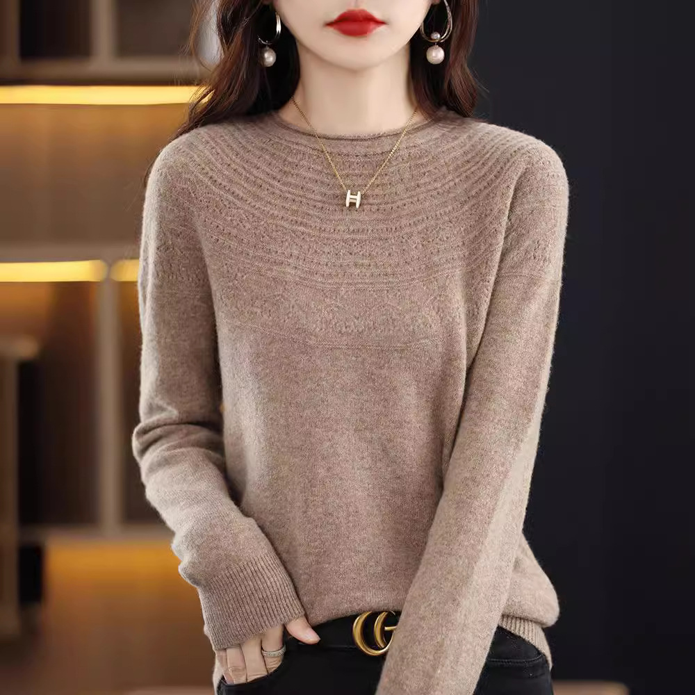 الخط الأول الملابس سلس Crewneck حليقة سترة المرأة الخريف والشتاء جديد بلون قاعدة قميص جوفاء محبوك سترة العصرية