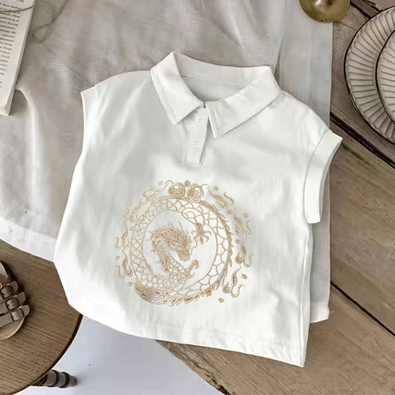 طفل سترة صيف جديد قمة الموضة الوطنية قميص بولو الفتيان والفتيات رقيقة جديدة النمط الصيني بلا أكمام تي شيرت