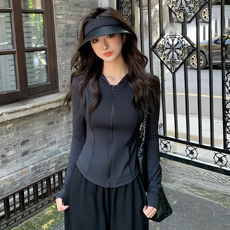 ملابس واقية من الشمس من الحرير الجليدي الأسود للسيدات صيفية رفيعة قابلة للتنفس في الهواء الطلق ومضادة للأشعة فوق البنفسجية سترة رياضية قصيرة مناسبة
