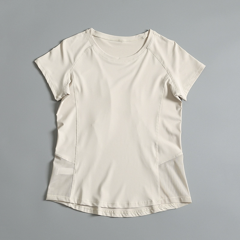 تي شيرت رياضي نسائي بأكمام قصيرة يسمح بمرور الهواء للتدريب والجري فضفاض صيفي بلون سادة ملابس يوجا مثيرة