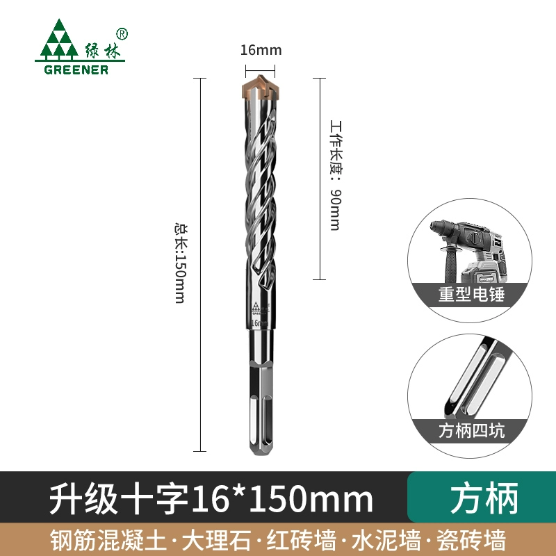 مثقاب الخشب الأخضر ذو التأثير المتقاطع، مطرقة كهربائية عالية الصلابة، مقبض مربع دائري، شريط فولاذي خرساني، حفر 6 جرس كهربائي عالمي