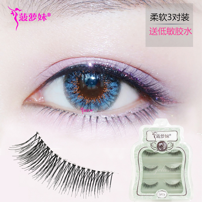 الأناناس فتاة الطبيعية مقلد سميكة الرموش الصناعية R06 لينة ومريحة 3 زوج/صندوق المبتدئين الزفاف نهاية العين نصف