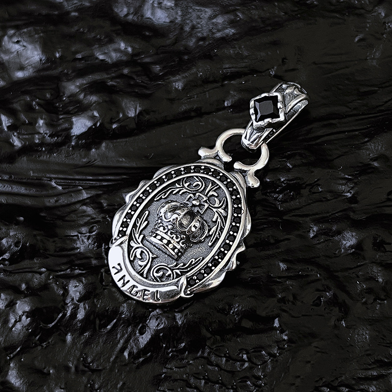 الصناعة الثقيلة الرجعية تنقش تاج البيضاوي قلادة قلادة الإناث شخصية الموضة مزاجه S925 الفضة الترقوة سلسلة سترة