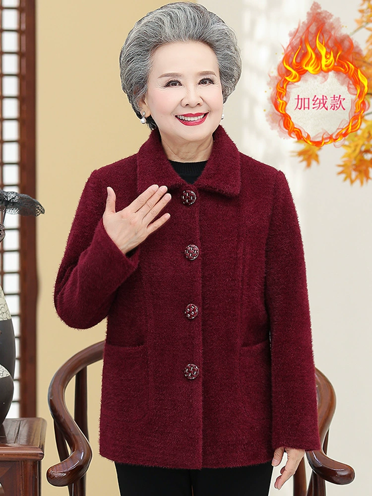 أمي في الخريف ، سترة السيدة العجوز مينك المخملية ، الجدة ، سترة ، نساء مسنون في الأوسط ، كبار السن ، كبار السن ، كبار السن ، ملابس الشتاء