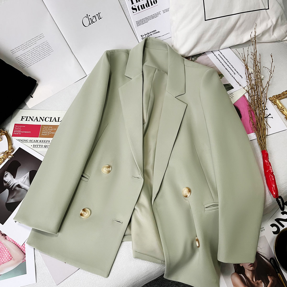 سترة بدلة صغيرة للربيع والخريف للنساء سترة غير رسمية للشارع مناسبة تمامًا متوسطة الطول مزدوجة الصدر للنساء