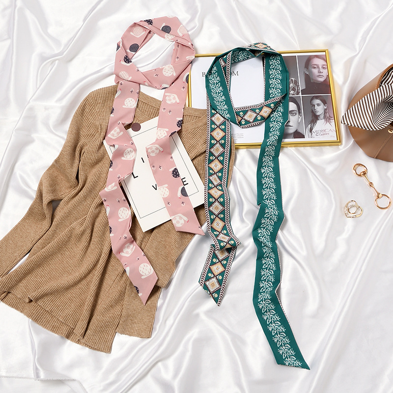 وشاح نسائي صغير على الطراز الكوري، شريط متناسق تمامًا، وشاح طويل ضيق، وشاح شعر، بدلة وشاح مزخرفة متعددة الوظائف