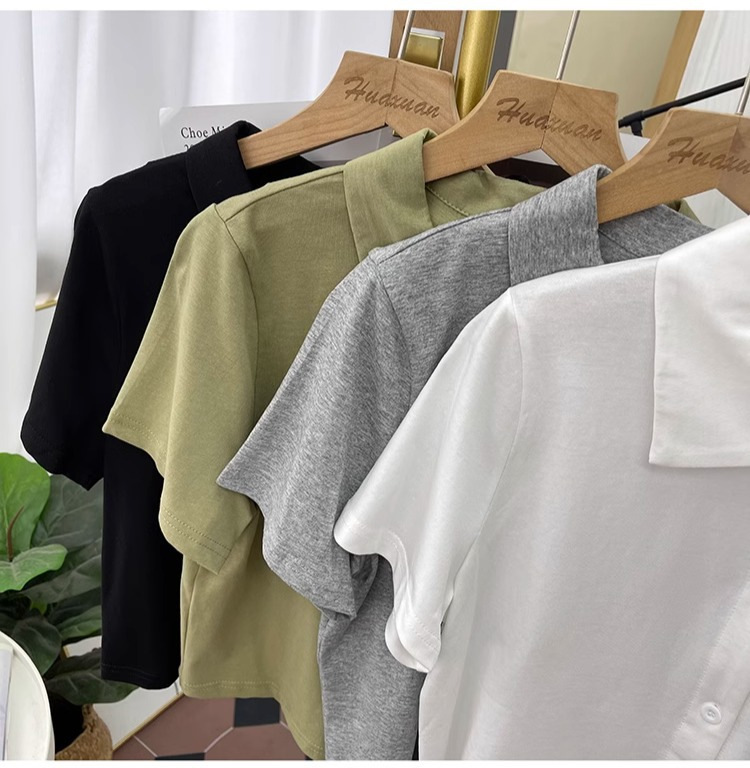فضفاضة قصيرة الأكمام قميص بولو المرأة الصيف الجديدة الكورية نمط فضفاض رقيقة أعلى الرجعية التلبيب تي شيرت سترة