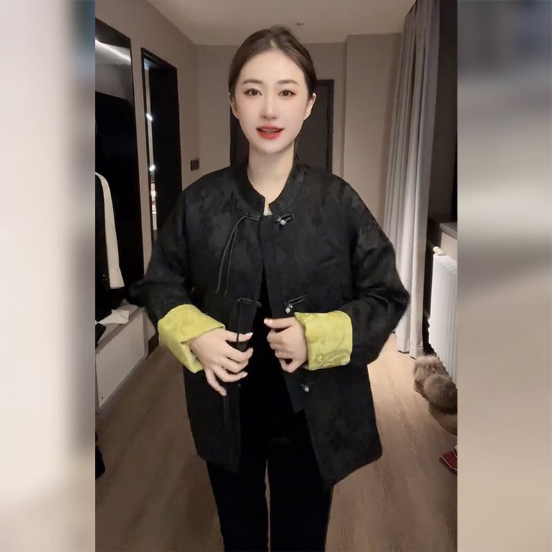 جديد النمط الصيني النمط الصيني معطف أسود المرأة 2024 انفجارات جديدة الربيع فستان تانغ صغير الراقية سونغ جين