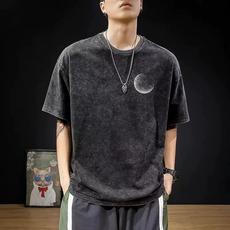 قميص ثقيل الرجعية الفائقة غسل القميص القصير للأكمام