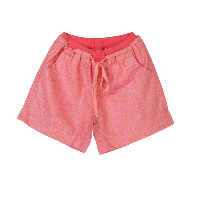 شورت من القطن الكتاني ذو اللون الصلب على الطراز الكوري بخصر مرن للتخسيس