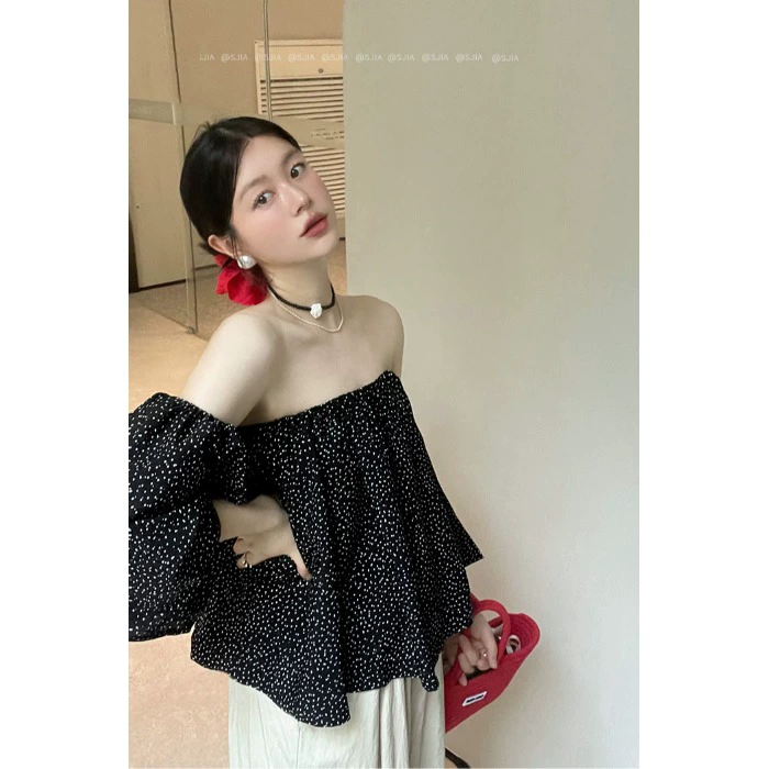 قميص بناتي مرح بكتف واحد منقط للنساء صيف 2024 قميص قصير جديد فضفاض يغطي الجسد ويبدو نحيفًا