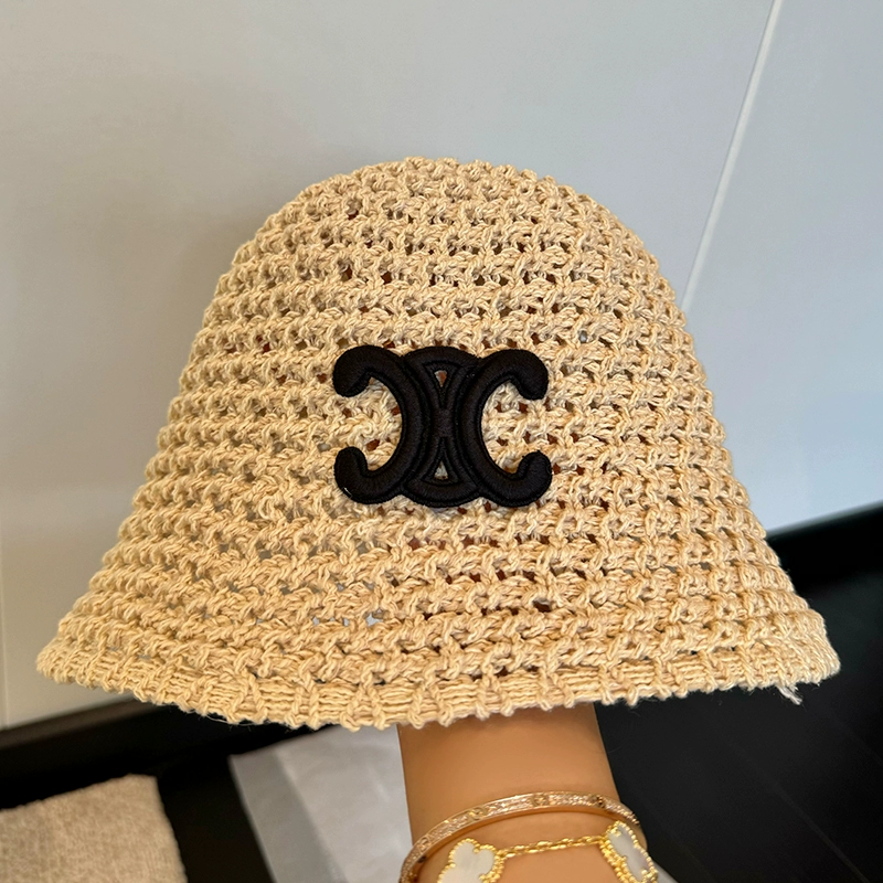 قبعة دلو نسائية كورية مضفرة بحافة قصيرة على شكل قبة