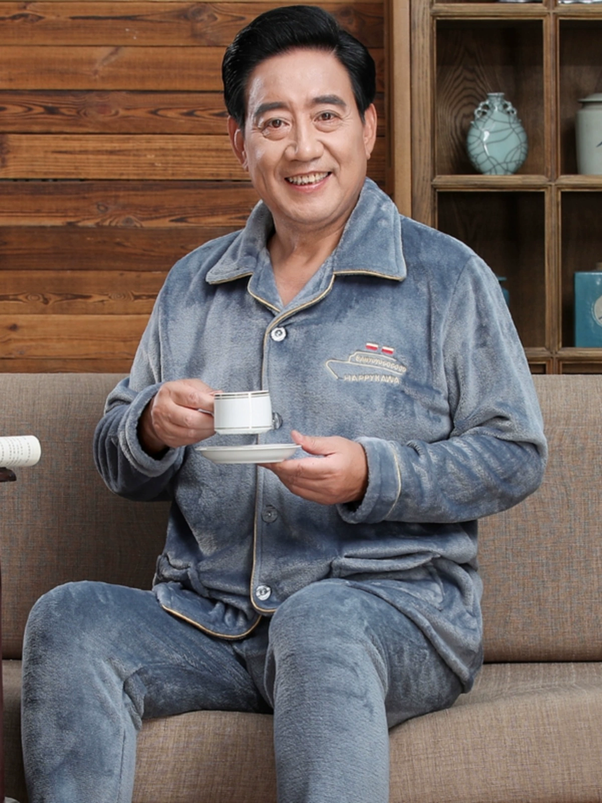 بيجامة رجالية، مخمل مرجاني سميك شتوي للرجال، بدلة ملابس منزلية من الفلانيل للأب في منتصف العمر وكبار السن، طراز الخريف