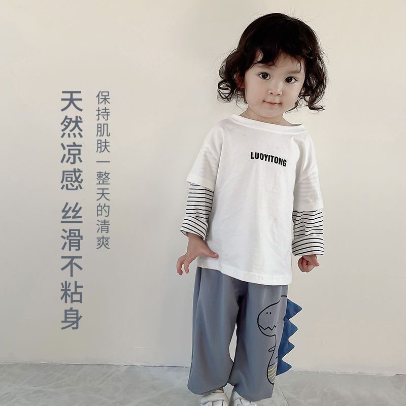السراويل المضادة للبعوض ملابس الأولاد النمط الأجنبي الشارع المقلية الطفل الحرير الجليد الإناث الطفل الصيف رقيقة فانوس السراويل الساق بنطلون