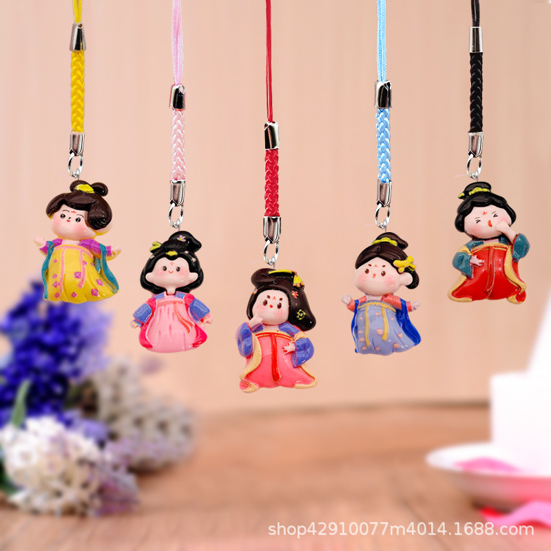مشرق الوجه العتيقة تانغ سلالة الأميرة الهاتف المحمول الحبل الكرتون حقيبة الظهر حقيبة حلي معلقة U القرص سماعة غطاء قلادة هدايا السفر