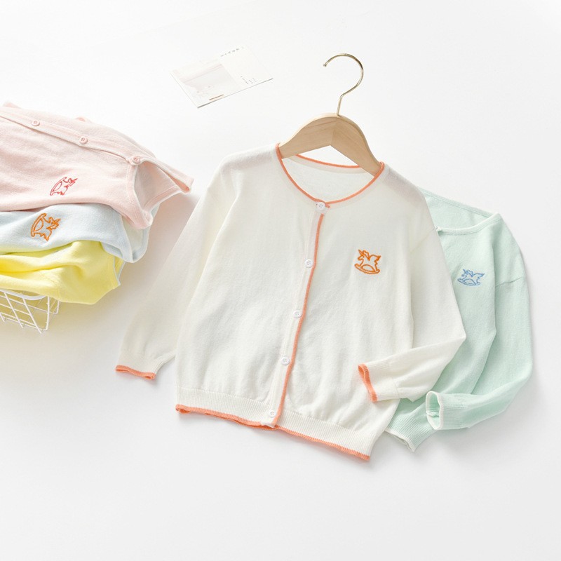 قميص الفتيات تكييف الهواء رقيقة الصيف الجديدة للأطفال القطن الخالص محبوك قميص الرجال الأطفال واقية من الشمس الملابس النمط الغربي سترة سترة