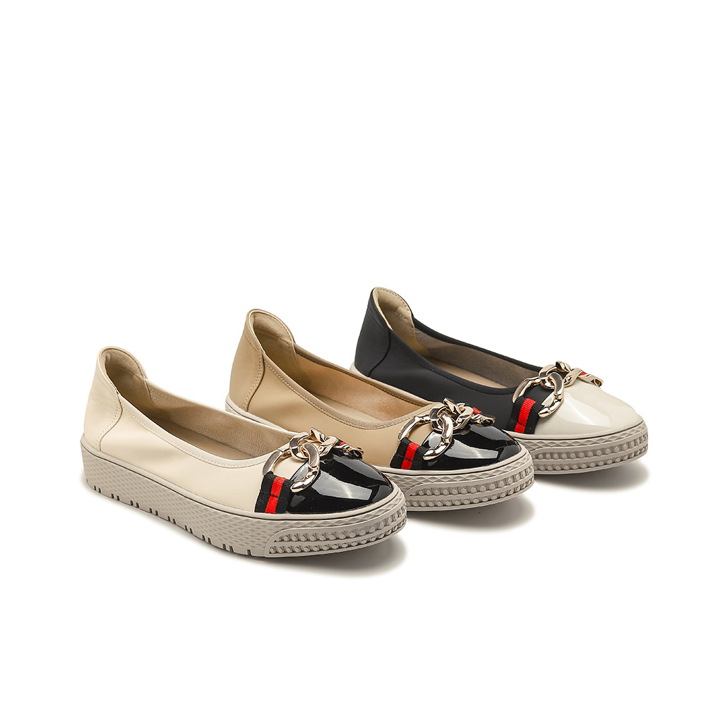 التجارة الخارجية عبر الحدود النمط البريطاني اللون مطابقة مشبك الفم الضحلة أحذية جلدية ناعمة بدون كعب أحذية منصة المرأة الانزلاق على المتسكعون 9178