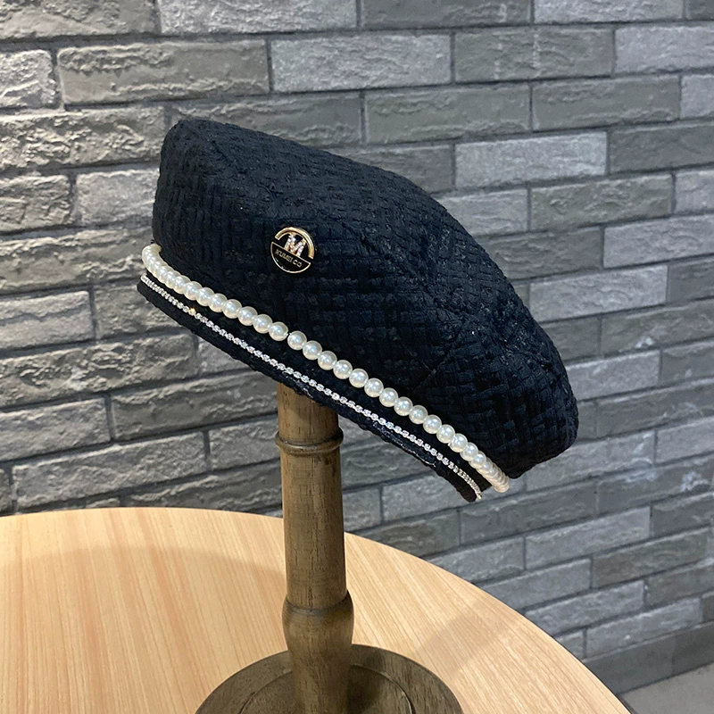 2021 وجه مستدير ، فتاة مناسبة قبعة في الخريف والشتاء الرجعية القبعات اللؤلؤة اللؤلؤة المزاج ، داتر رسام أنيقة المد والجزر