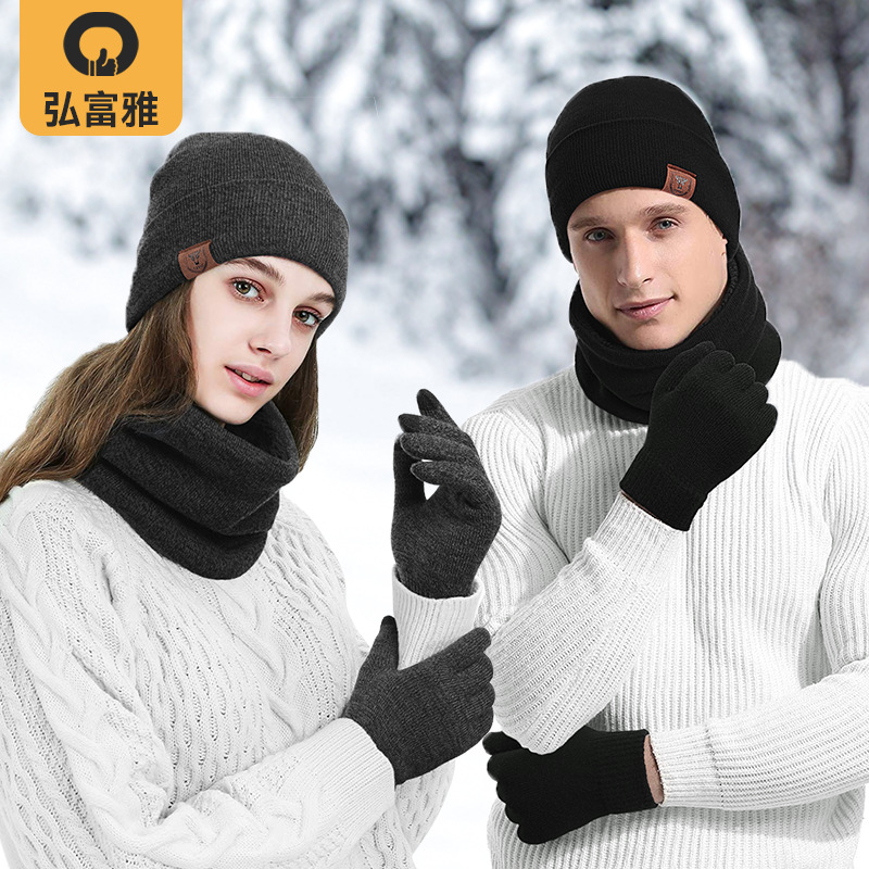 مجموعة قفازات وشاح قبعة أمازون من ثلاث قطع للرجال والنساء لفصل الخريف والشتاء في الهواء الطلق لركوب الدراجات النارية الرياضية بدلة دافئة