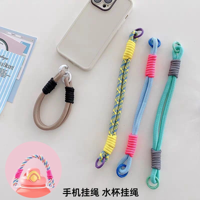 حبل للهاتف المحمول الجديد ذو لون مطابق للاتجاه منسوج يدويًا وحبل طويل وقصير إبداعي بإبزيم مزدوج قابل للحمل بطاقة نسائية مضادة للضياع
