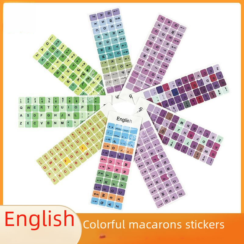 دفتر الملاحظات الإنجليزية لوحة المفاتيح ملصق معكرون اللون زر ملصق الكمبيوتر المكتبي ملصق فيلم إصلاح بلوري