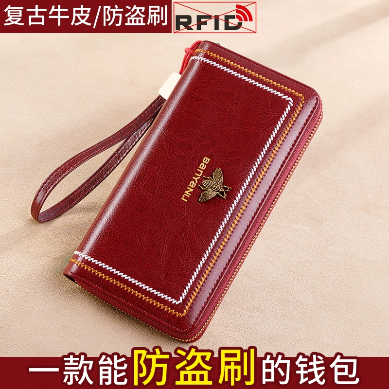 محفظة نسائية طويلة 2024 جديدة من الجلد الطبيعي ذات سعة كبيرة محفظة متعددة الوظائف محفظة نسائية بسيطة بتصميم كلاسيكي
