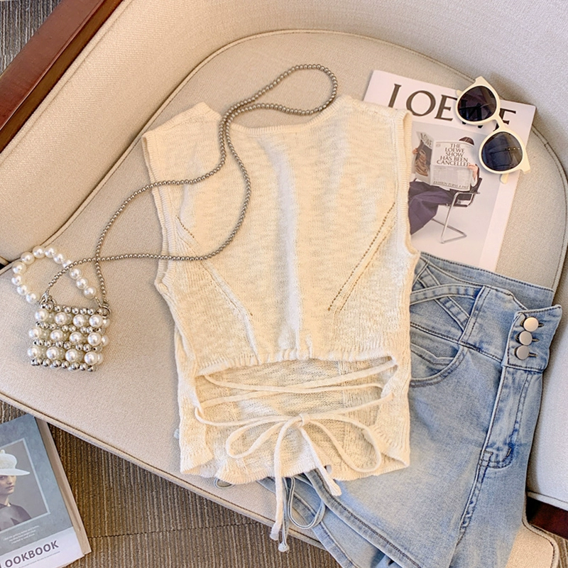 قميص حريري ثلجي مثير عالي الجودة بدون ظهر وأربطة وأكمام قصيرة